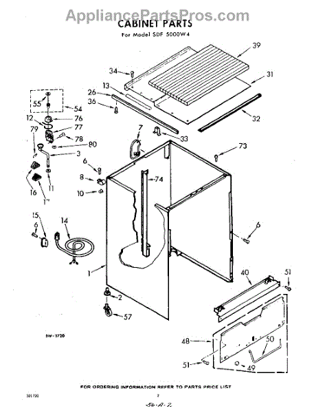 Parts for Whirlpool SDF5000W4: 02 - Cabinet Parts