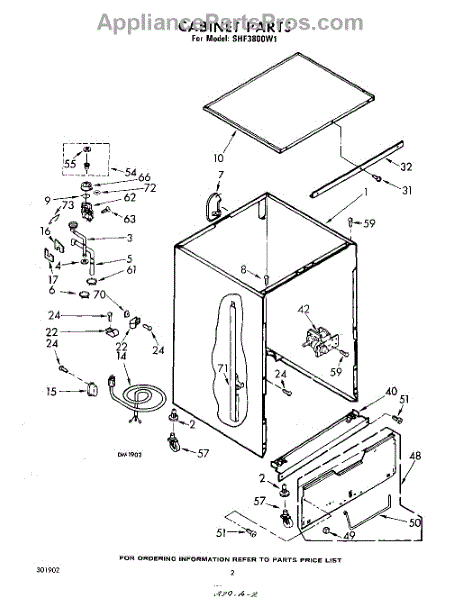 Parts for Whirlpool SHF3800W1: 02 - Cabinet Parts