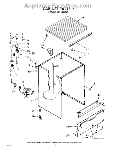 Parts for Whirlpool SHF5800W1: 02 - Cabinet Parts