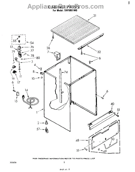 Parts for Whirlpool SHF5801W0: 02 - Cabinet Parts