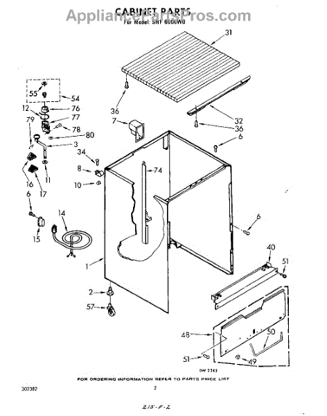 Parts for Whirlpool SHF6000W0: 02 - Cabinet Parts