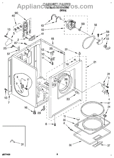 Fits all Whirlpool-made dryers (Whirlpool, Kenmore with prefix 110, Roper, KitchenAid, and Estate). Matching belt 341241 and rear support rollers 349241T. Whirlpool dryer repair manual 677818L.