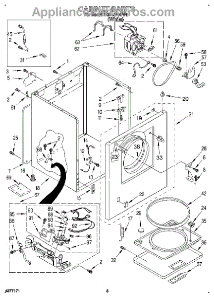 Fits all Whirlpool-made dryers (Whirlpool, Kenmore with prefix 110, Roper, KitchenAid, and Estate). Matching belt 341241 and rear support rollers 349241T. Whirlpool dryer repair manual 677818L.