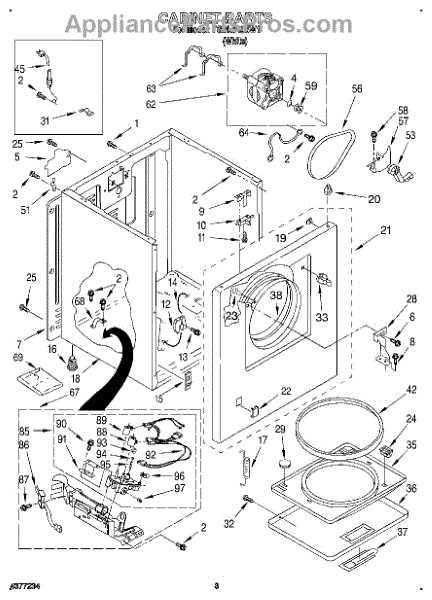 Fits all Whirlpool-made dryers (Whirlpool, Kenmore with prefix 110, Roper, KitchenAid, and Estate). Matching belt 341241 and rear support rollers 349241T. Whirlpool dryer repair manual 677818L.