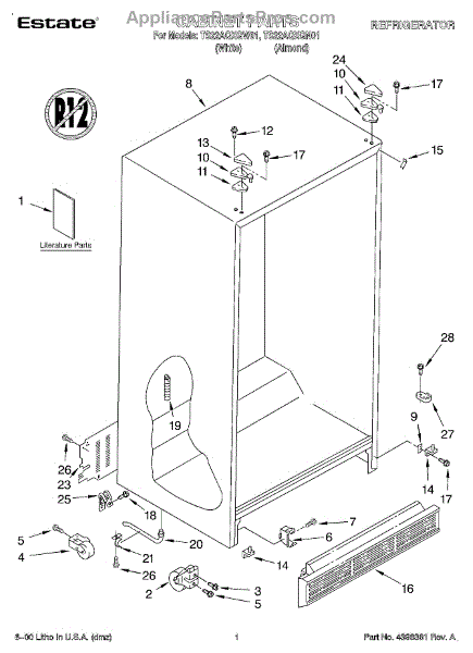 Parts for Whirlpool TS22AQXGW01: 01 - Cabinet, Literature Parts