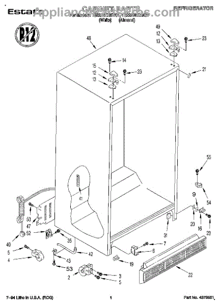Parts for Whirlpool TS22AWXBN01: 01 - Cabinet Parts