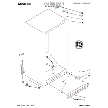 Parts for Whirlpool TVF15FREW00: 01 - Cabinet Parts