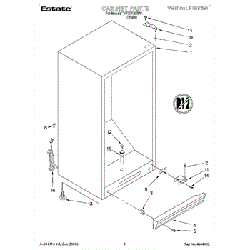 Parts for Whirlpool TVF15FREW01: 01 - Cabinet Parts