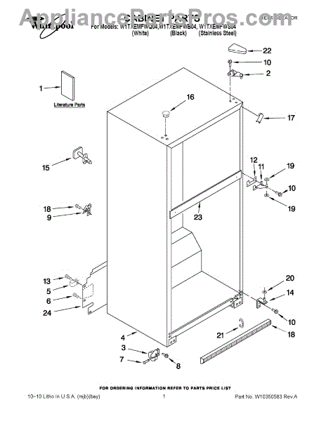 Parts for Whirlpool W1TXEMFWS04: 01 - Cabinet Parts
