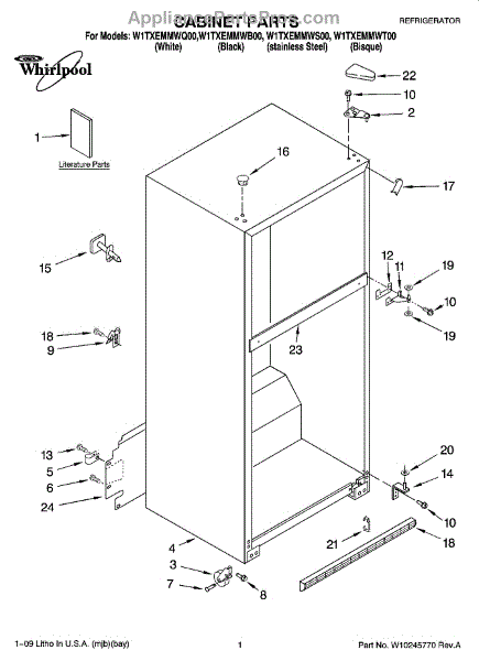 Parts for Whirlpool W1TXEMMWQ00: 01 - Cabinet Parts