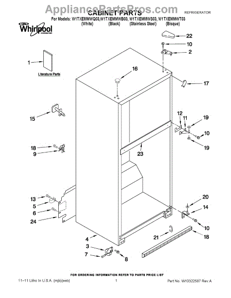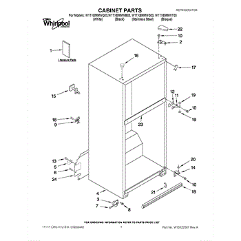 Repair manual for refrigerators and freezers made by Whirlpool. Covered brands include Whirlpool, Sears, Kenmore, Kitchen Aid, Roper, and Estate. Easy to follow photographs and step-by-step repair procedures.