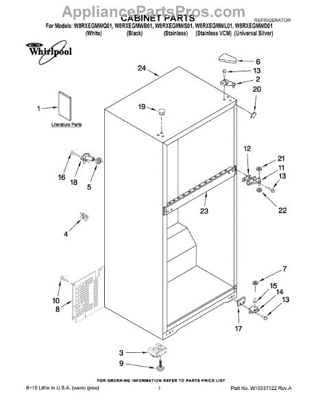 Parts for Whirlpool W8RXEGMWQ01: 01 - Cabinet Parts