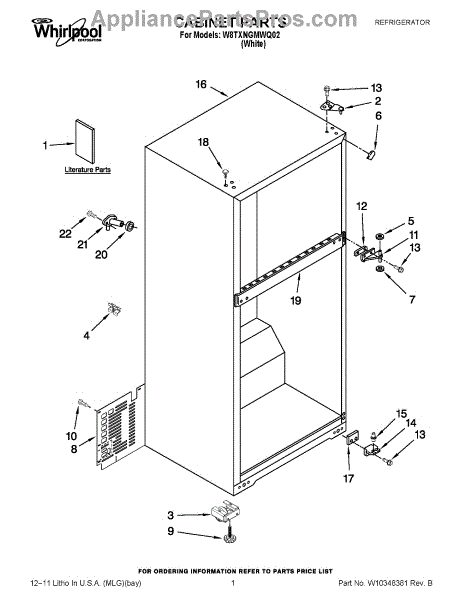 Repair manual for refrigerators and freezers made by Whirlpool. Covered brands include Whirlpool, Sears, Kenmore, Kitchen Aid, Roper, and Estate. Easy to follow photographs and step-by-step repair procedures.