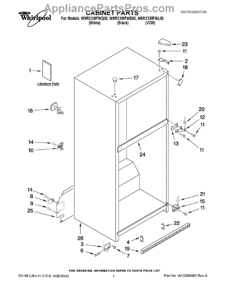 Repair manual for refrigerators and freezers made by Whirlpool. Covered brands include Whirlpool, Sears, Kenmore, Kitchen Aid, Roper, and Estate. Easy to follow photographs and step-by-step repair procedures.