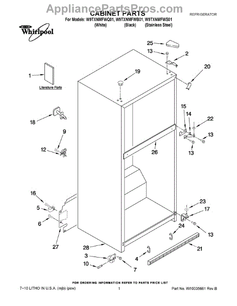 Repair manual for refrigerators and freezers made by Whirlpool. Covered brands include Whirlpool, Sears, Kenmore, Kitchen Aid, Roper, and Estate. Easy to follow photographs and step-by-step repair procedures.