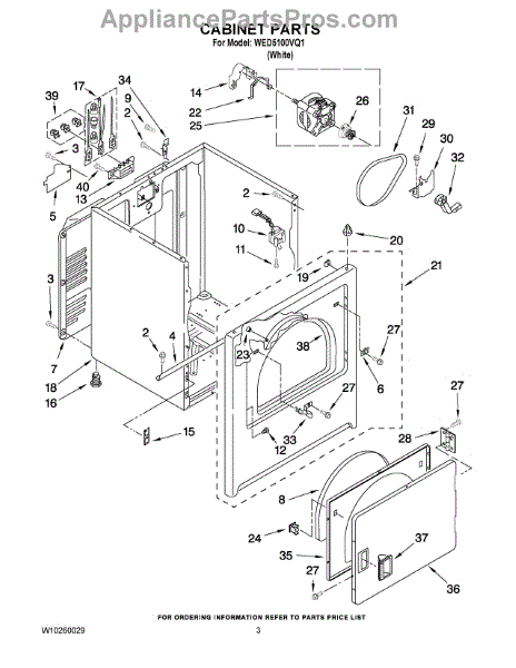 Parts for Whirlpool WED5100VQ1: 02 - Cabinet Parts