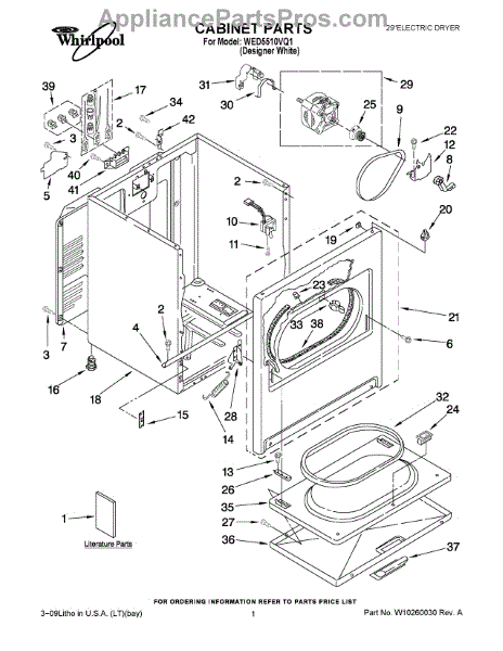 Fits all Whirlpool-made dryers (Whirlpool, Kenmore with prefix 110, Roper, KitchenAid, and Estate). Matching belt 341241 and rear support rollers 349241T. Whirlpool dryer repair manual 677818L.