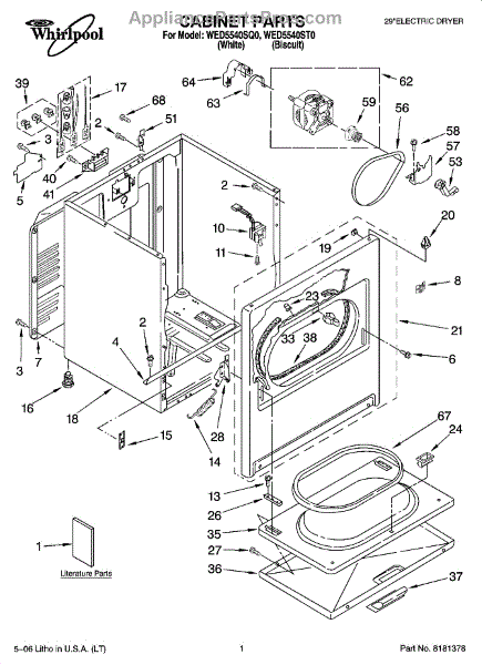 Parts for Whirlpool WED5540SQ0: 01 - Cabinet Parts