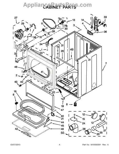 This exhaust pipe routes exhaust air from the appliance to the home vent, restoring proper airflow for safe, efficient operation. Use when the original pipe is cracked, bent, or leaking. What it does:
