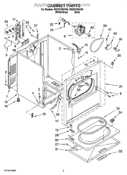 Parts for Whirlpool WED5700VW0: 02 - Cabinet Parts