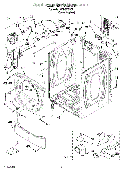This exhaust pipe routes exhaust air from the appliance to the home vent, restoring proper airflow for safe, efficient operation. Use when the original pipe is cracked, bent, or leaking. What it does: