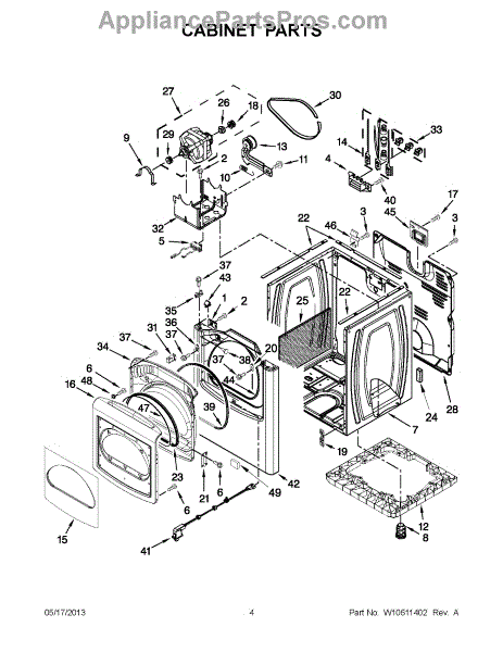 Parts for Whirlpool WED8500BC0: 02 - Cabinet Parts