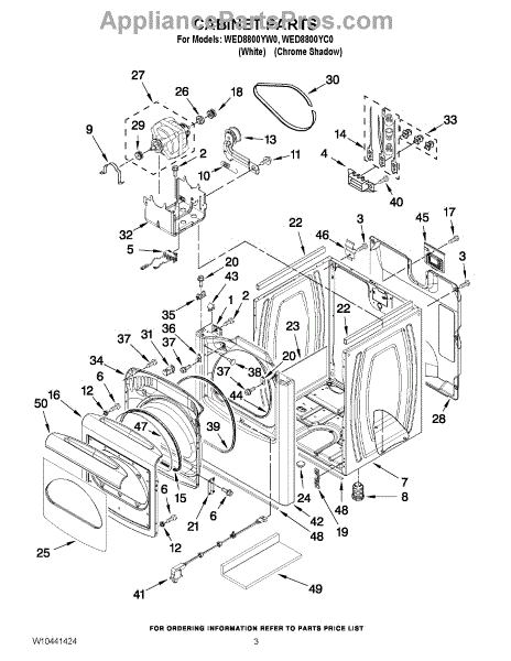 This in the male piece on the front panel. For the female piece on the door order WPW10111905.