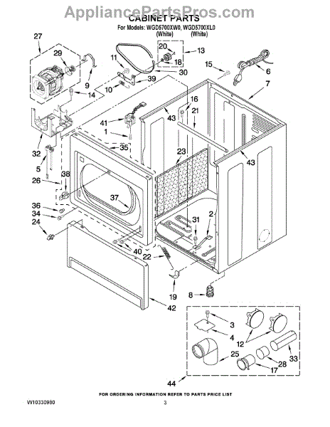 Parts for Whirlpool WGD5700XW0: 02 - Cabinet Parts