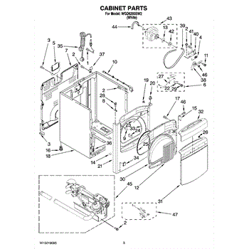 The Drive Belt is an OEM part for Whirlpool clothes dryers. Located inside the dryer cabinet, this poly-V belt links the motor to the tumbling drum.