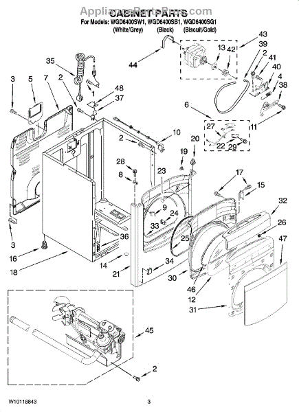 Parts for Whirlpool WGD6400SB1: 02 - Cabinet Parts