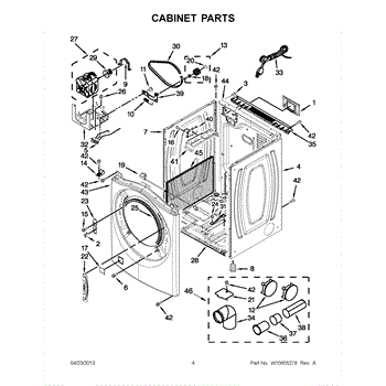 This exhaust cover plate protects and finishes the dryer's exhaust outlet, helping direct airflow and keeping the vent opening sealed from debris. It provides a clean, durable surface where the exhaust connects to the dryer cabinet. What it does:
