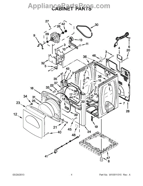 The Idler Arm Spring is an OEM part for Whirlpool dryers, maintains tension in the dryer's belt system. This spring is crucial for the proper operation of the dryer, as it helps to keep the belt tight around the drum and motor pulley, enabling the drum to rotate smoothly during cycles.