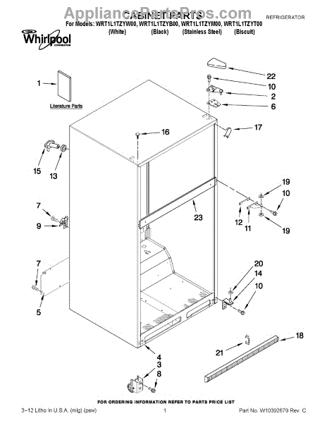 The Hinge Washer is an OEM replacement part for Whirlpool refrigerators. This small washer plays a supports the refrigerator door hinge assembly. Center hinge plastic washer. Causes of a bad hinge washer are generally normal wear and tear from extensive use. As the washer absorbs pressure each time the door is opened or closed, it can gradually deteriorate or crack. Physical damage is also possible if the door is accidentally struck or slammed. Symptoms of a worn or damaged hinge washer include: