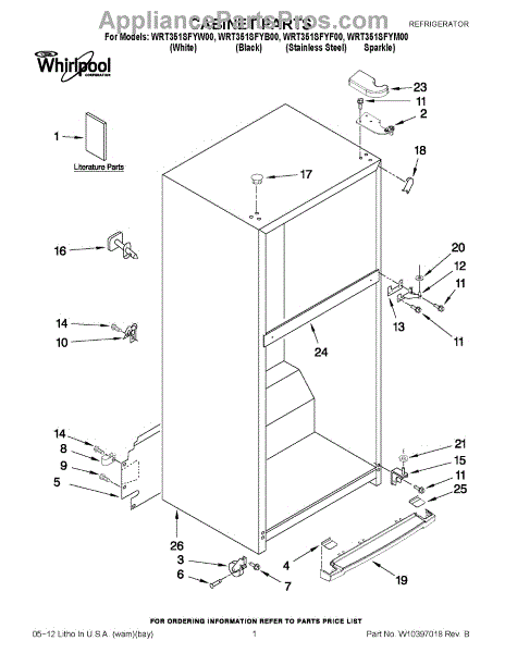 Repair manual for refrigerators and freezers made by Whirlpool. Covered brands include Whirlpool, Sears, Kenmore, Kitchen Aid, Roper, and Estate. Easy to follow photographs and step-by-step repair procedures.