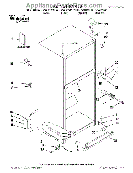 Parts for Whirlpool WRT579SMYM01: 01 - Cabinet Parts