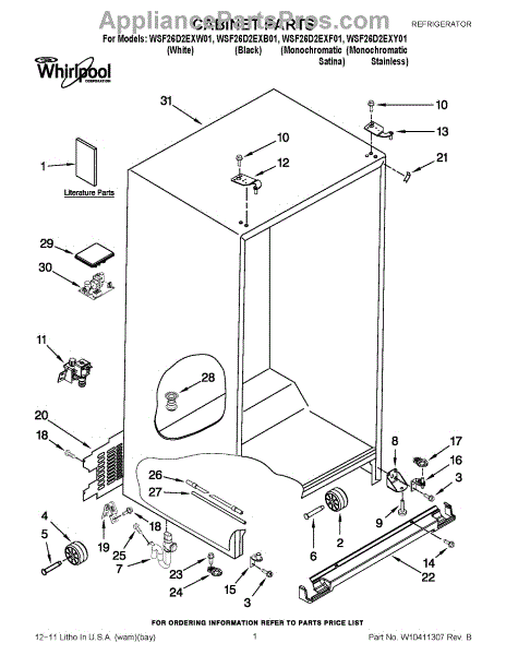 The Leveling Leg is an OEM replacement part for Whirlpool refrigerators. It is one of four legs situated internally at the base corners for proper tilt positioning. It raises or lowers each leg independently to stabilize units on uneven kitchen floors. Causes of replacement consist of wear from continual torque required during positioning processes. Thread damage or corrosion buildup attributable to floor locations over extended use necessitates periodic renewal as well. Symptoms involve: