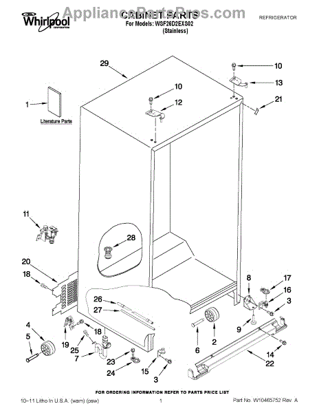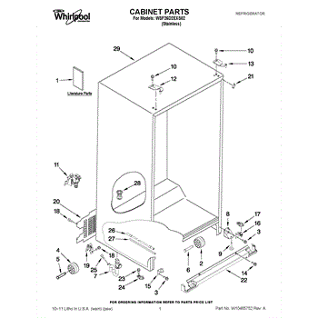 The Leveling Leg is an OEM replacement part for Whirlpool refrigerators. It is one of four legs situated internally at the base corners for proper tilt positioning. It raises or lowers each leg independently to stabilize units on uneven kitchen floors. Causes of replacement consist of wear from continual torque required during positioning processes. Thread damage or corrosion buildup attributable to floor locations over extended use necessitates periodic renewal as well. Symptoms involve: