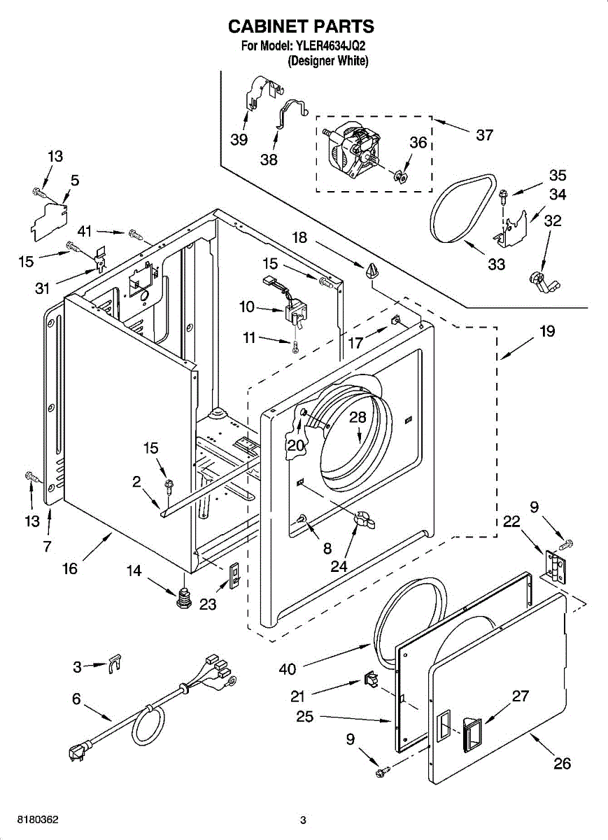 Dryer outer cabinet that houses internal components. Replace if your cabinet is rusted, dented, cracked, or damaged, compromising structural integrity.