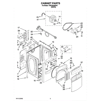 The Drive Belt is an OEM part for Whirlpool clothes dryers. Located inside the dryer cabinet, this poly-V belt links the motor to the tumbling drum.