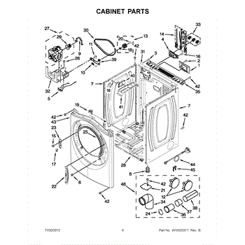 This exhaust cover plate protects and finishes the dryer's exhaust outlet, helping direct airflow and keeping the vent opening sealed from debris. It provides a clean, durable surface where the exhaust connects to the dryer cabinet. What it does: