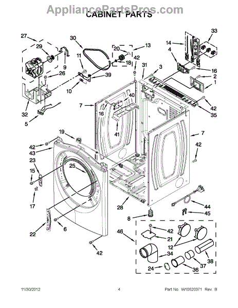 This exhaust pipe vents hot, moist air from the dryer to the home venting system, helping the appliance dry clothes efficiently and reduce indoor humidity. Replace a damaged or restricted pipe to restore proper airflow. What it does: