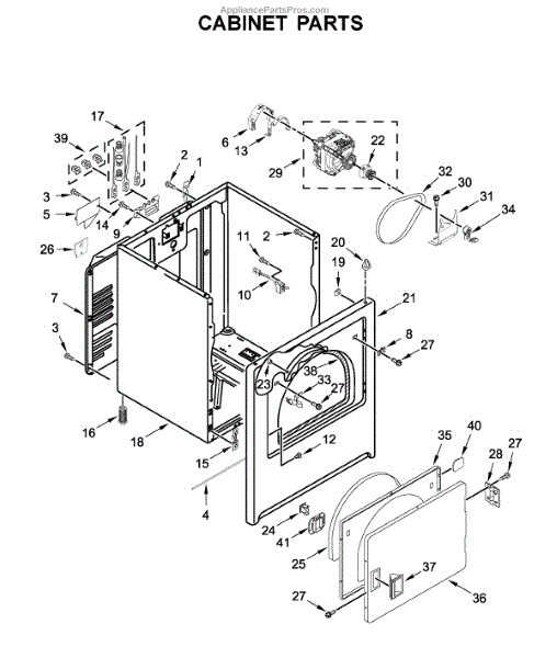 Causes of a bad door catch can include wear and tear of the plastic tang and spring from years of repeated opening and closing of the dryer door. Over time, this limits its ability to fully engage and latch securely.