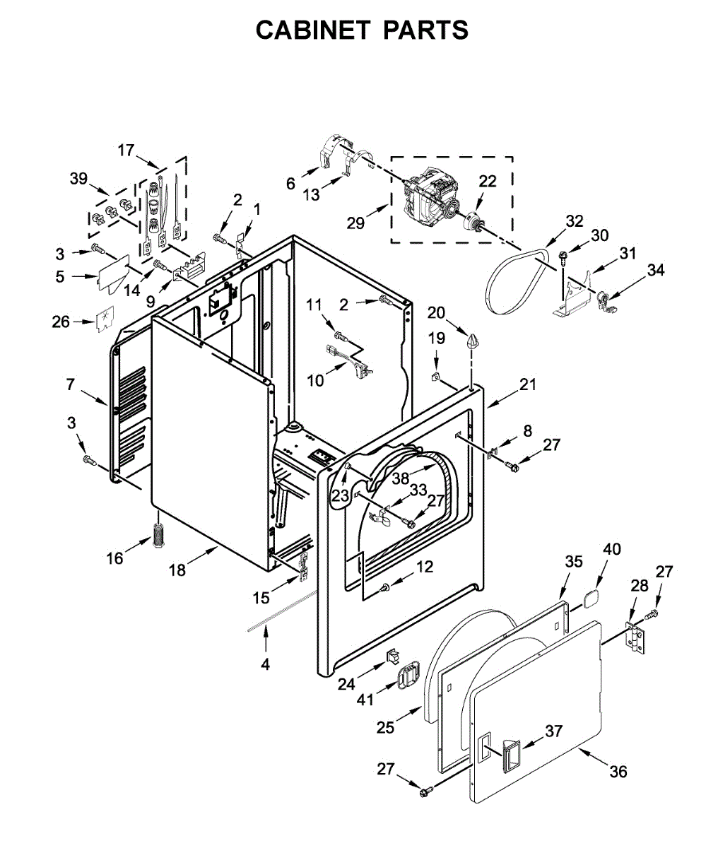 Fits all Whirlpool-made dryers (Whirlpool, Kenmore with prefix 110, Roper, KitchenAid, and Estate). Matching belt 341241 and rear support rollers 349241T. Whirlpool dryer repair manual 677818L.