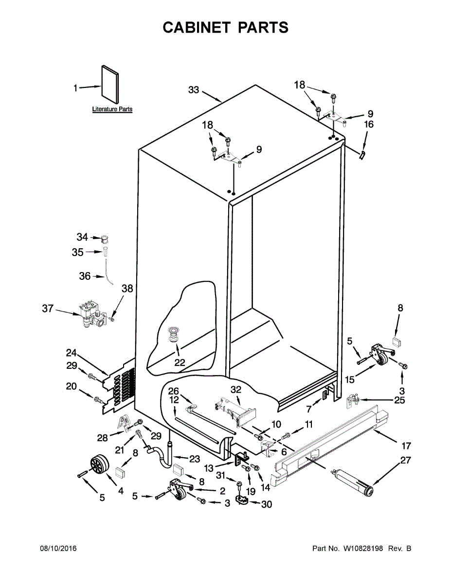Causes of a bad Lower Refrigerator Door Hinge and Closure Cam Assembly can include wear and tear from normal use, improper door alignment or installation, excessive force when opening or closing the door, or corrosion due to moisture and other environmental factors.