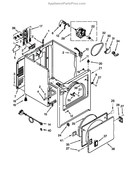 Fits all Whirlpool-made dryers (Whirlpool, Kenmore with prefix 110, Roper, KitchenAid, and Estate). Matching belt 341241 and rear support rollers 349241T. Whirlpool dryer repair manual 677818L.