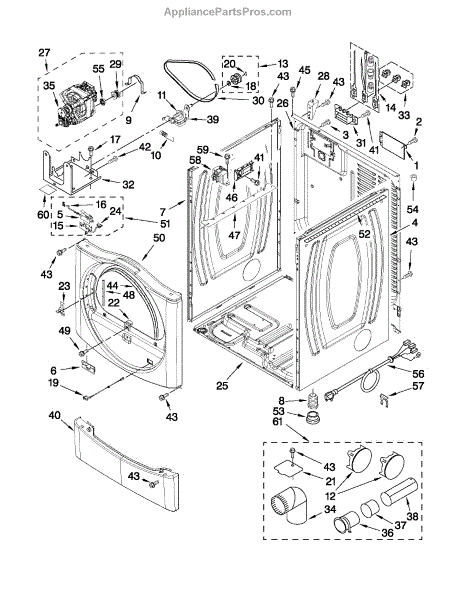 Replacement base for your dryer. Installs at the bottom to support the unit. Needed when original is cracked, damaged, or structurally compromised.