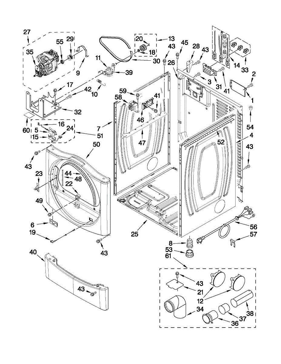 Side or bottom exhaust vent kit for dryers. Relocates dryer vent from rear to side or bottom position. Includes metal duct, hardware, and instructions.