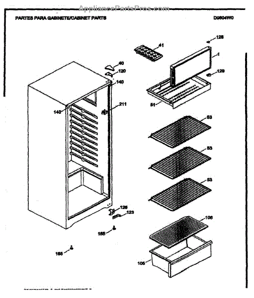 Parts for Danby D9604W: Cabinet Parts