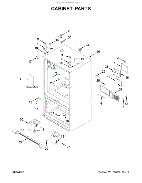 This hinge cover assembly conceals and protects the door hinge area, providing a clean look while shielding wiring and moving parts from dust and moisture. It restores proper coverage if the original cover is cracked, missing, or loose.