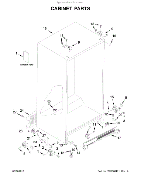 Cabinet roller axle supports refrigerator wheels for smooth movement. Replace if rollers wobble or fridge is hard to move. Verify fit with your model.